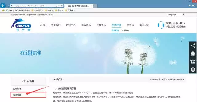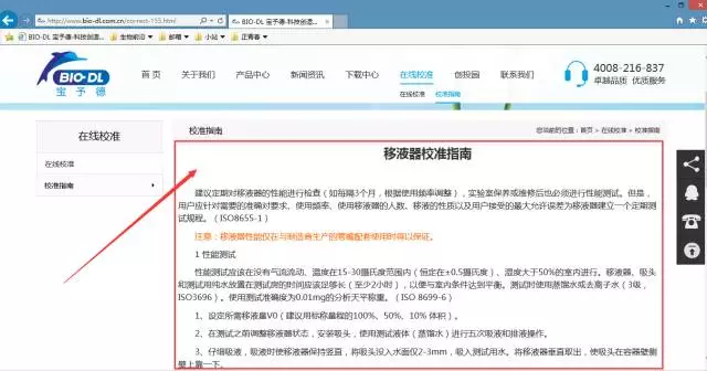 2.點(diǎn)擊下圖紅色箭頭指示的“在線(xiàn)校準”進(jìn)入移液器在線(xiàn)校準服務(wù)。