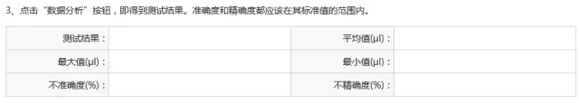 6.根據移液器校準指南操作,讀取天平讀數,輸入下示表格,并點(diǎn)擊藍色按鈕“數據分析”。